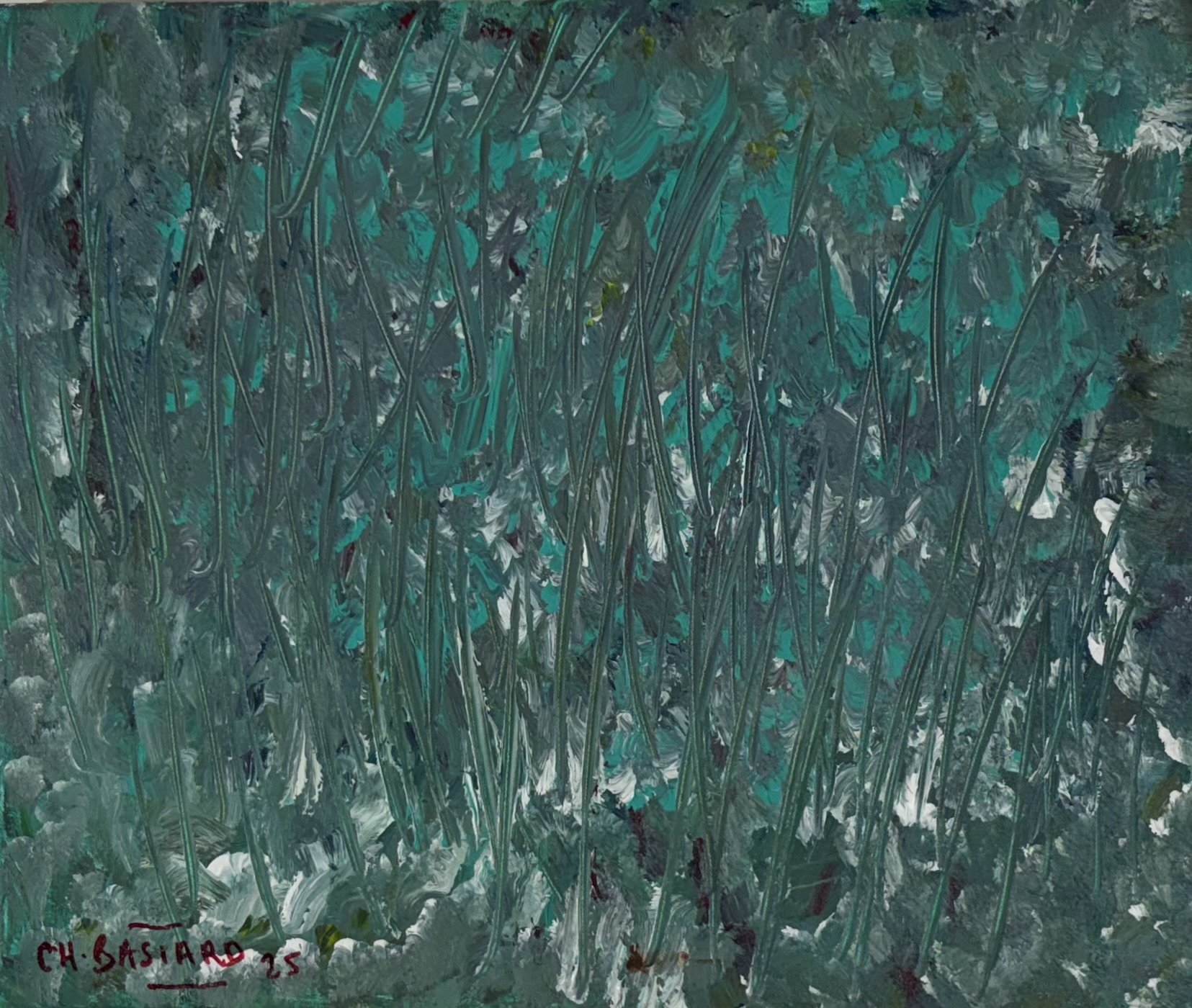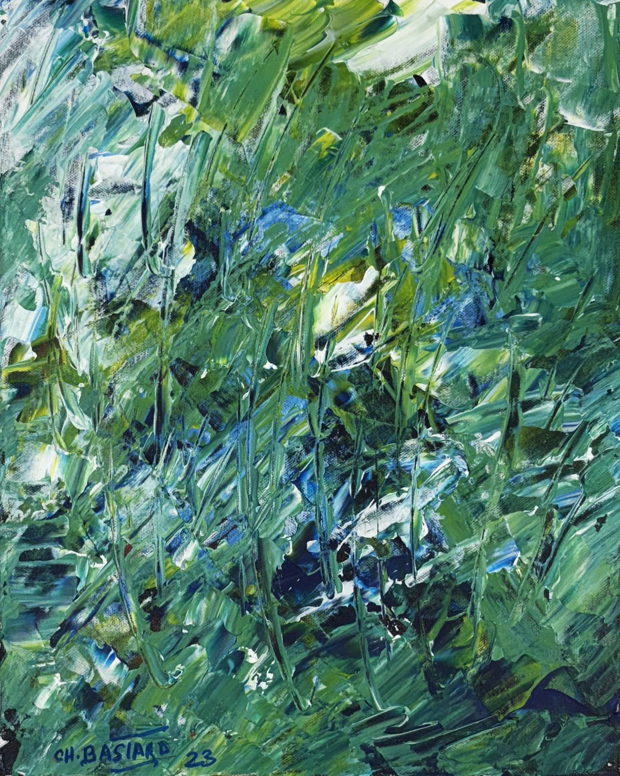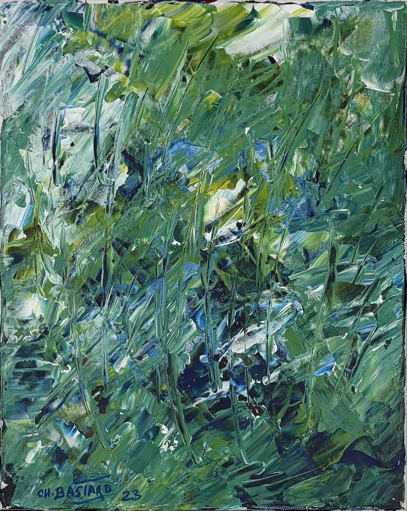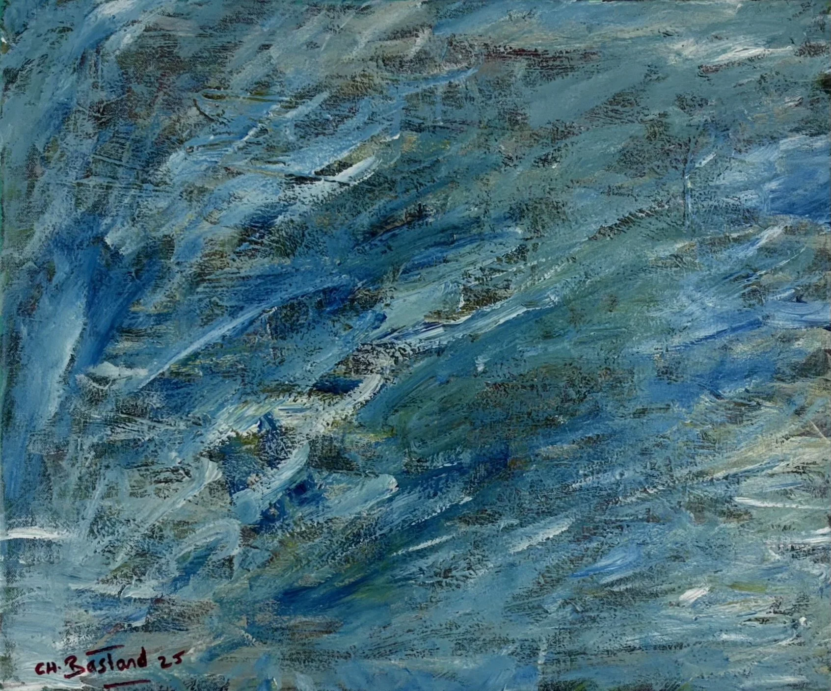 Dans son exposition intitulée Organic, Christian Bastard de Crisnay signe une exposition où la nature se manifeste moins comme un paysage que comme une force en mouvement. Les vingt toiles présentées forment une immersion dans un monde vibrant, traversé de couleurs, de textures et d’élans qui semblent surgir directement de la terre, de l’eau et de l’air. Ici, la nature n’est pas représentée : elle est ressentie, traduite en matière. Les bleus profonds évoquent tour à tour la mer, le souffle du large ou la fraîcheur d’un courant. Ils ne cherchent pas à figurer l’eau, mais à en saisir l’énergie. La peinture, étalée au couteau, déposée en relief, devient surface mouvante, presque liquide, où chaque strie semble ouvrir un passage vers un monde en transformation. À ces espaces bleutés répondent des toiles baignées de verts, d’ocres et de jaunes lumineux. On y perçoit l’élan d’une végétation dense, la chaleur d’un sol, l’effervescence d’un paysage vivant.