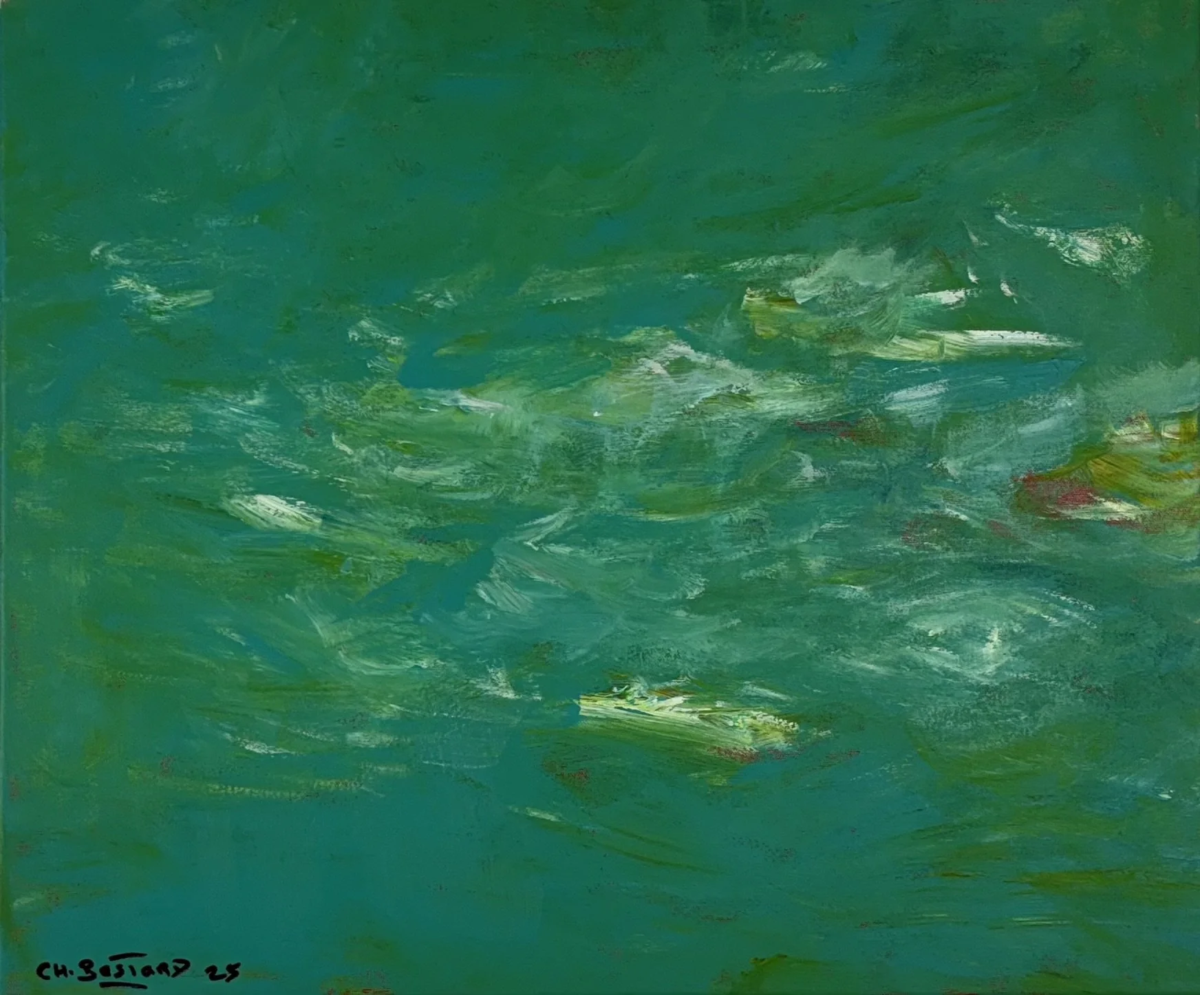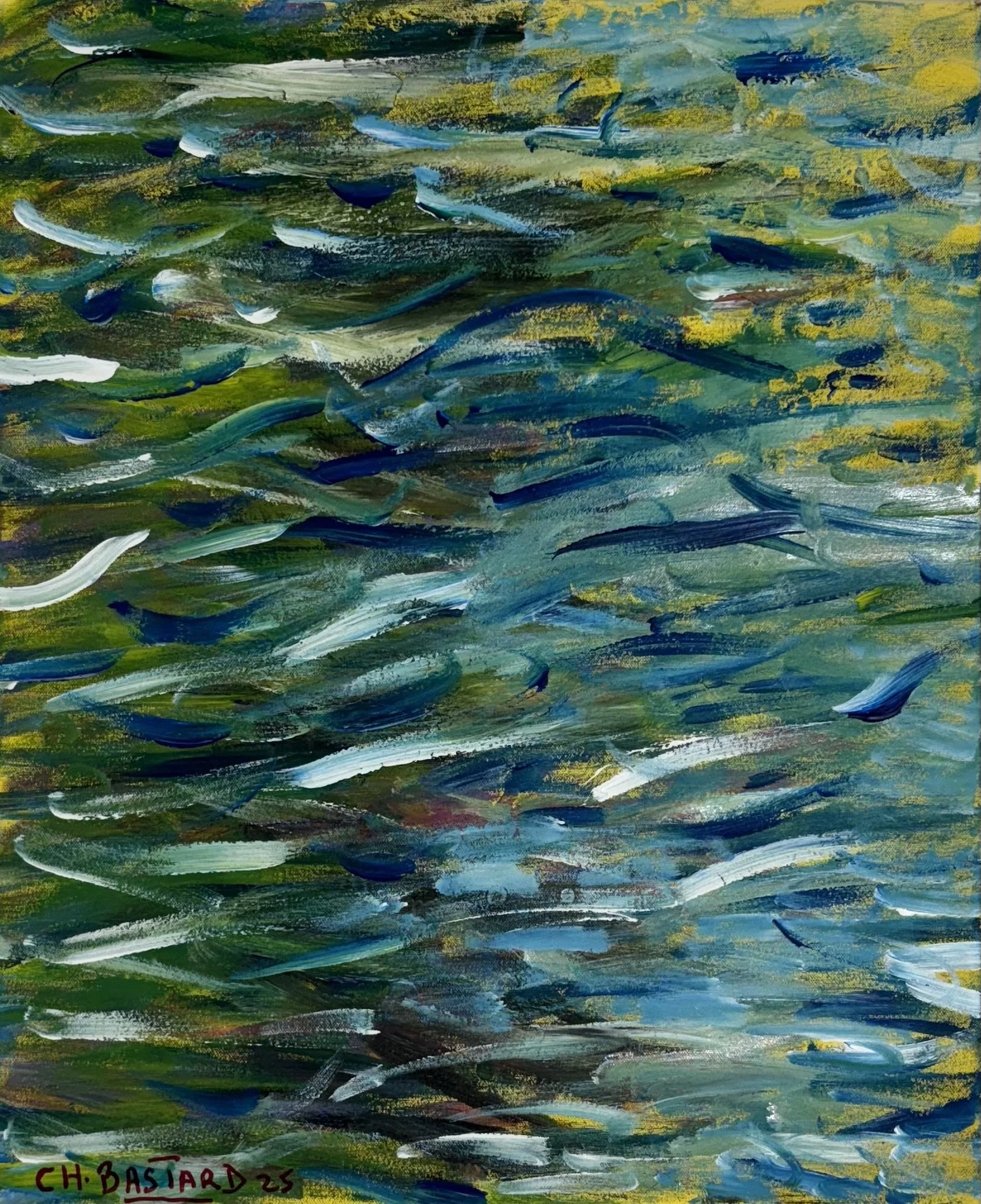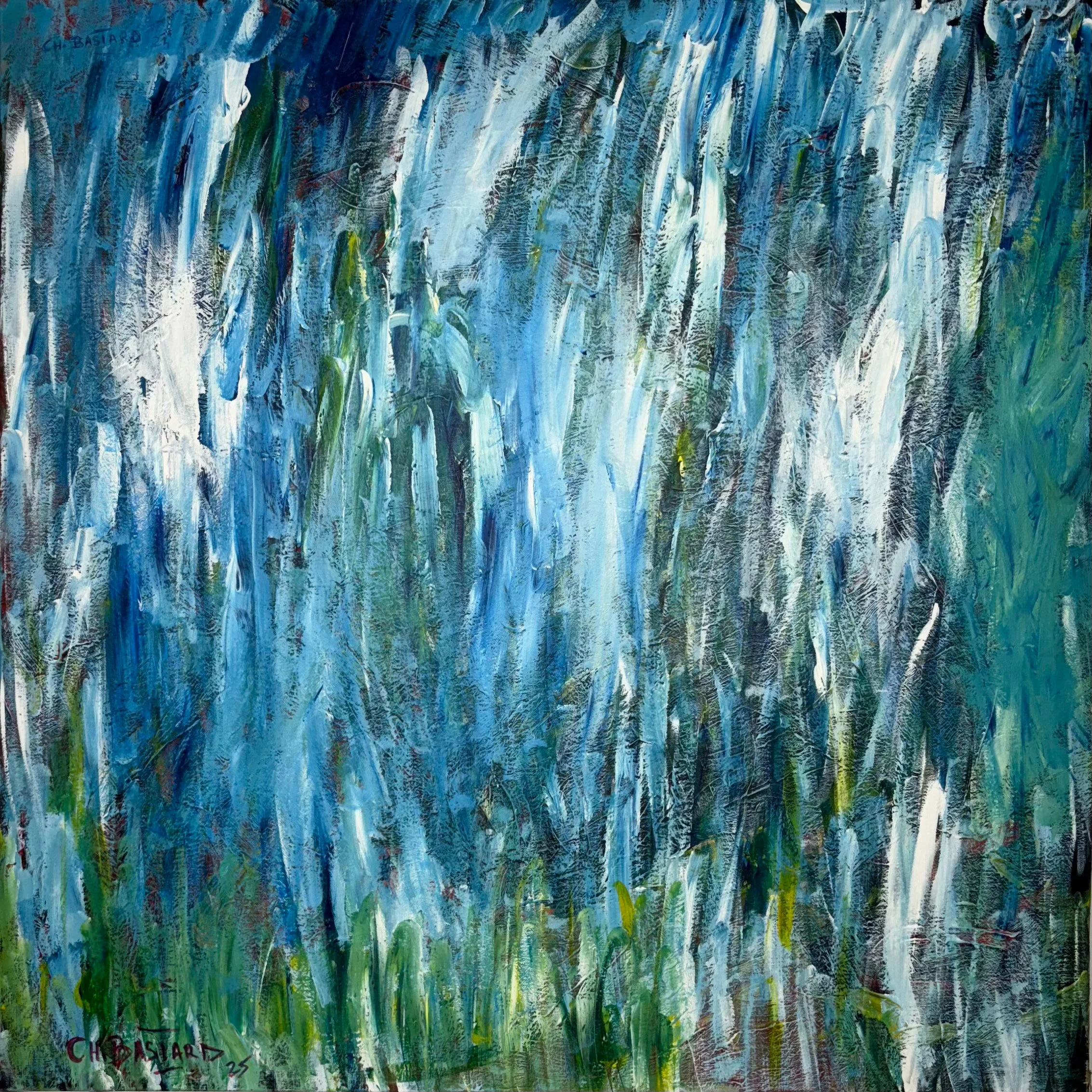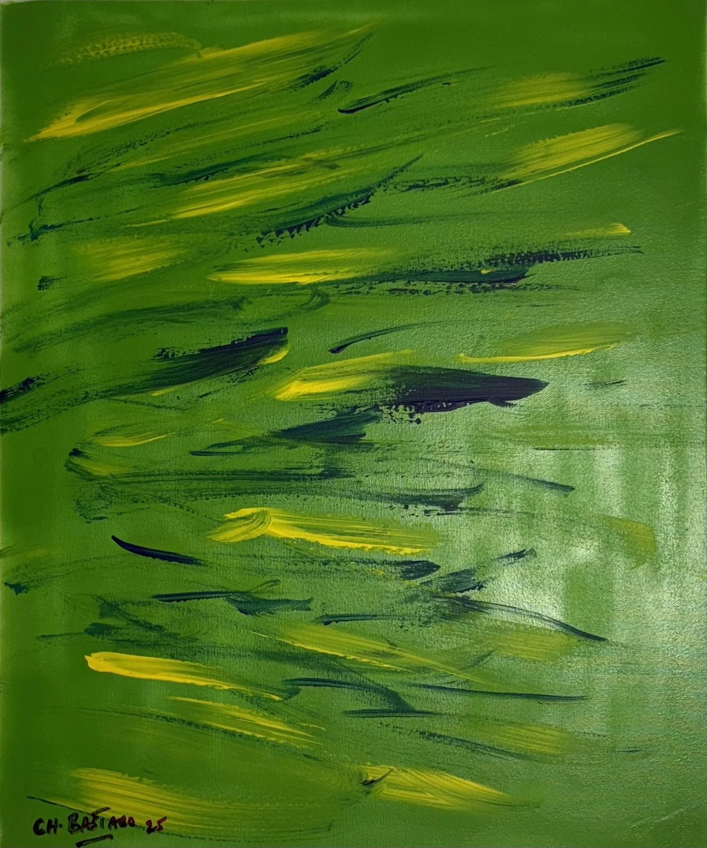 Dans son exposition intitulée Organic, Christian Bastard de Crisnay signe une exposition où la nature se manifeste moins comme un paysage que comme une force en mouvement. Les vingt toiles présentées forment une immersion dans un monde vibrant, traversé de couleurs, de textures et d’élans qui semblent surgir directement de la terre, de l’eau et de l’air. Ici, la nature n’est pas représentée : elle est ressentie, traduite en matière. Les bleus profonds évoquent tour à tour la mer, le souffle du large ou la fraîcheur d’un courant. Ils ne cherchent pas à figurer l’eau, mais à en saisir l’énergie. La peinture, étalée au couteau, déposée en relief, devient surface mouvante, presque liquide, où chaque strie semble ouvrir un passage vers un monde en transformation. À ces espaces bleutés répondent des toiles baignées de verts, d’ocres et de jaunes lumineux. On y perçoit l’élan d’une végétation dense, la chaleur d’un sol, l’effervescence d’un paysage vivant.